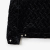 Made from 100% pure wool flannel, it has a smooth texture and a high-quality fit. It is a basic slacks design with a moderate silhouette. The slacks express a unique emblem using black cord embroidery that gives a three-dimensional look.