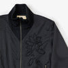 ブランドアイコンでもあるクレマチスをコード刺繍で表現したトラックブルゾン。非常に綺麗な染色性を持つカチオンポリエステルを使用し、濃厚で艶感のあるカラーリングに仕上げています。また珪藻土を用いた特殊な糸を混ぜることにより、非常に優れた機能を持つ素材で、ストレッチ性、消臭効果、吸水速乾、保湿性を兼ね備えた特殊な素材でイージーケアとストレスフリーな使い勝手の良さが特徴の素材です。