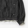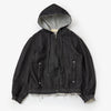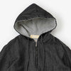 岡山県井原市で織り上げられた、独特な厚みと柔らかな風合いのある独自のデニムを使用したミニマルなパーカーブルゾン。経糸に8番手インディゴ染めのムラ糸、緯糸に普通のデニムより太い5番手の甘撚りのスラブ糸を使用したふっくらとしたやわらかい手触りが特徴のデニムです。緯糸は甘く撚糸することで全体的に絶妙な膨らみが出て非常にソフトな風合いに仕上がります。