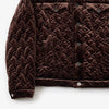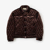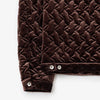 ベロアのキルティングを用いた、サード型ブルゾンです。オリジナルで作成したリーフ柄のキルティング。ソフトな風合いを程よい光沢感があるストレッチベロアを使用しています。中綿を入れることによりブルゾンながら幅広いシーズンの着用を楽しめるアイテムです。